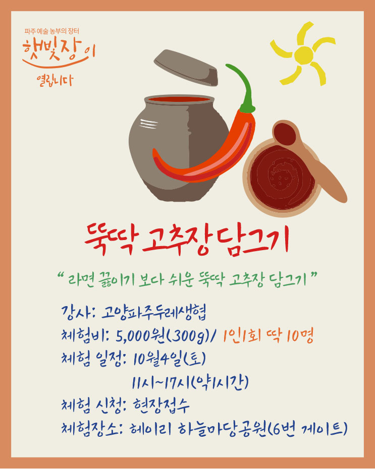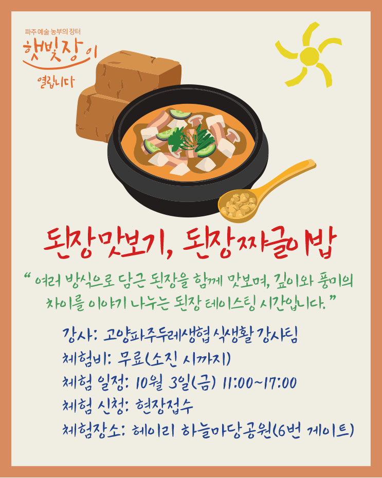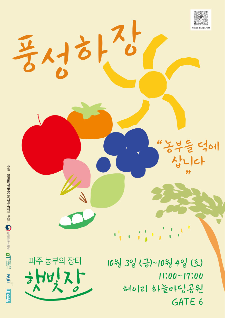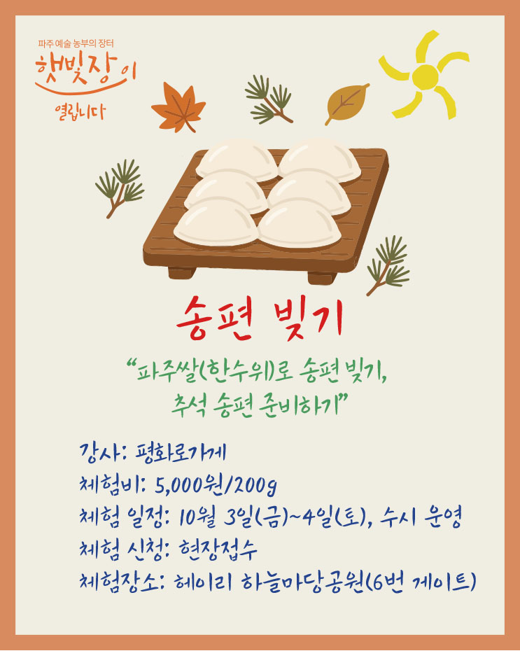 10월 3일(금), 4일(토)에 헤이리 하늘마당공원 "햇빛장"에 오시면 풍성한 가을부자가 됩니다.